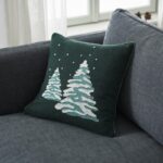 Μαξιλαροθήκη με μπουκλέ ύφασμα και κεντημένο χριστουγεννιάτικο σχέδιο.