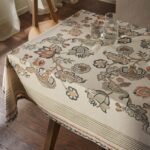 Ημίλινο τραπεζομάντηλο τυπωμένο με ανεξίτηλο εμπριμέ σχέδιο .Φινιρίστηκε με θερμό αέρα κάνοντας το ύφασμά του μαλακό και χυτό.