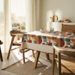 Τυπωμένο τραπεζομάντηλο με ανεξίτηλα χρώματα. Φινιρίστηκε με θερμό αέρα κάνοντας το ύφασμα του μαλακό και χυτό.