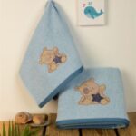 DIMcol ΠΕΤΣΕΤΑ Με Κέντημα Σετ 2 τεμ bebe Star Bear 151 30X50,70X140 Σιελ 100% Cotton